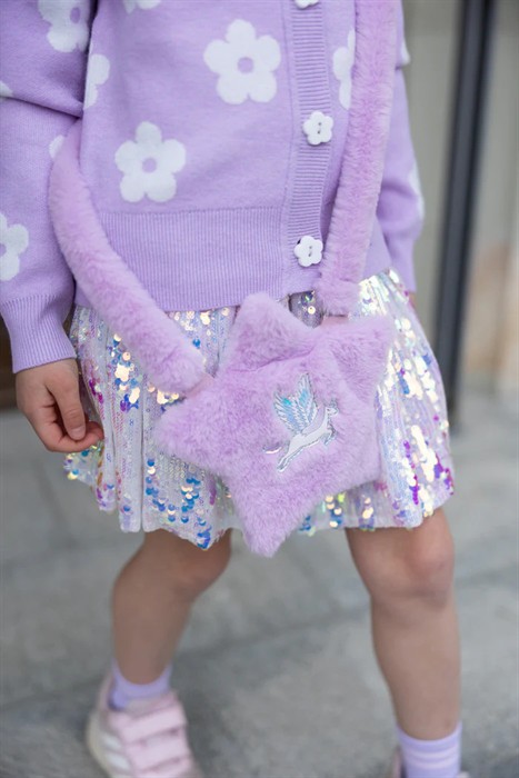 Tauche ein in eine Welt voller Magie mit der Amazing Alicorn Tasche ein zauberhaftes Must-have für junge Träumerinnen. Die Tasche ist in Form eines flauschigen, hellvioletten Sterns gestaltet, so weich wie eine Wolke und so magisch wie ein Märchen.
