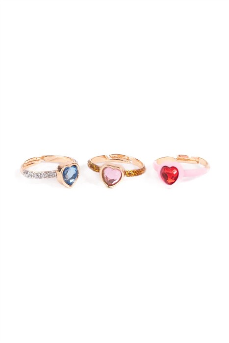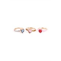 Drei Herzen, endloses Funkeln! Dieses verstellbare Ring-Trio besteht aus blauen, rosa und roten Herzdiamanten, die jeweils mit schimmernden Details akzentuiert sind, um ein farbenfrohes und charmantes Set zu schaffen, das kleine Hände immer wieder tragen werden.