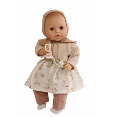 Amy verzaubert Gross und Klein mit ihrem liebevollen Babygesicht und ihrem Lächeln. Diese bezaubernde Puppe kommt mit einer praktischen Windel zum Wechseln und einem Schnuller, sodass Ihr Kind sie liebevoll umsorgen kann. Ihr weicher Stoffkörper lädt zum Knuddeln und Schmusen ein und sorgt für unvergessliche Spielmomente. Modelliert von der renommierten Puppenkünstlerin Brigitte Paetsch, besteht Amys Kopf, sowie ihre Arme und Beine aus hochwertigem Vinyl. Dank des Granulatsäckchens im Po kann die Puppe gut sitzen und ist bereit für alle Abenteuer, die Ihr Kind sich ausdenkt.Amy hat modelliertes Haar, funkelnde braune Schlafaugen, damit ihr Kind mit der Puppe Träumen kann. Sie trägt eine moderne Spielkleidung mit Waldtierdruck auf der Kleidung. Die Kleidung ist bei 30 Grad per Hand waschbar, sodass sie immer frisch und sauber bleibt. Jede Amy wird in liebevoller Handarbeit in unserer eigenen Manufaktur in Rauenstein/Thüringen hergestellt. Sie ist geeignet für Kinder ab 36 Monaten und wird sicherlich das Herz Ihres Kindes erobern!