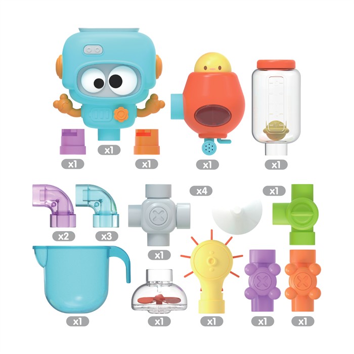 Mit diesem bunten Wasserspiel-Lernbaukasten für die Badewanne tauchen Kinder in eine Welt voller spritziger Experimente ein. Beim Giessen, Stecken und Kombinieren lernen sie auf natürliche Weise, wie Wasser fließt und sich bewegt. Die 21 Bauteile lassen sich leicht greifen und miteinander verbinden perfekt für kleine Hände. Der Baukasten fördert motorische Fähigkeiten, Kreativität und logisches Denken. Ideal für kleine Forscherinnen und Forscher ab 3 Jahren.
