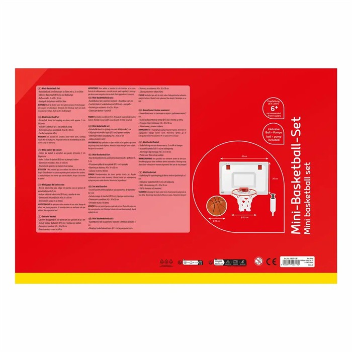 Das Set enthält alles, was du brauchst: ein stabiler Korb mit Netz, ein passender Ball sowie eine Ballpumpe. Dank der einfachen Montage lässt sich das Set schnell anbringen und genauso unkompliziert wieder entfernen ideal fürs Kinderzimmer, Büro oder unterwegs.