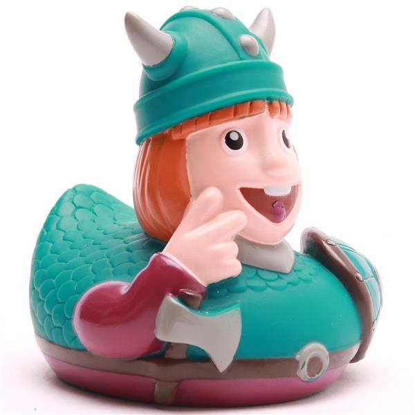 Diese Badeente bringt den cleveren Wikinger direkt in die Badewanne. Mit seinem typischen Helm mit Hörnern, der roten Mähne und dem pfiffigen Grinsen wirkt sie, als hätte sie schon wieder eine geniale Idee parat. Die liebevollen Details wie Schild, Gürtel und kleines Beil machen sie zu einem echten Hingucker.