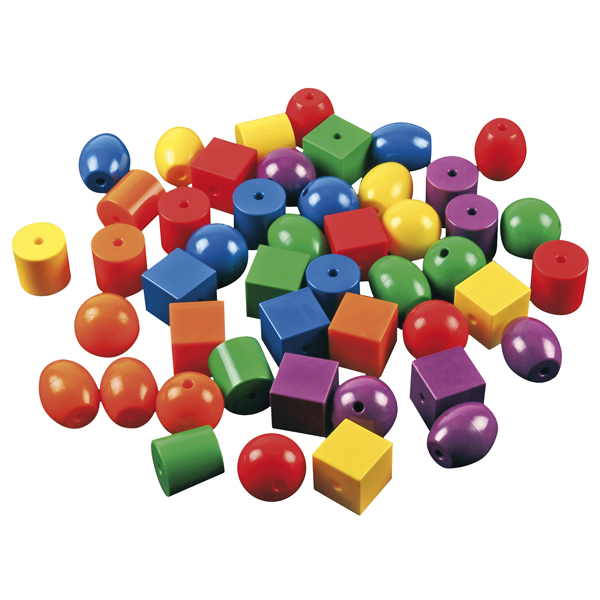 ... sind diese besonders großen Fädelperlen. Set: 48 Formen aus hochglänzendem ABS Kunststoff, 6 Fädelschnüre.