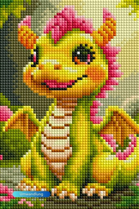 Ein fröhlicher, farbenfroher kleiner Drache, der sofort gute Laune verbreitet. Mit seinen grossen Augen, den liebevollen Details und den sanften Farbverläufen entsteht Schritt für Schritt ein lebendiges Motiv, das richtig schön funkelt. Perfekt für alle, die niedliche Designs lieben und ein entspannendes Kreativprojekt suchen.