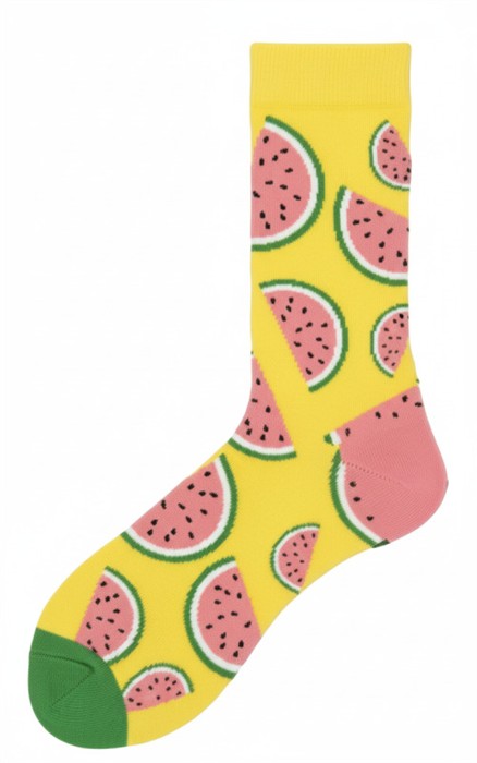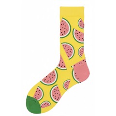 Diese Socken bringen Sommerlaune direkt an deine Füsse. Saftige Wassermelonen auf leuchtendem Gelb sorgen für einen frischen Look, der sofort ins Auge fällt und einfach gute Stimmung macht ganz egal, wie das Wetter draussen ist.
