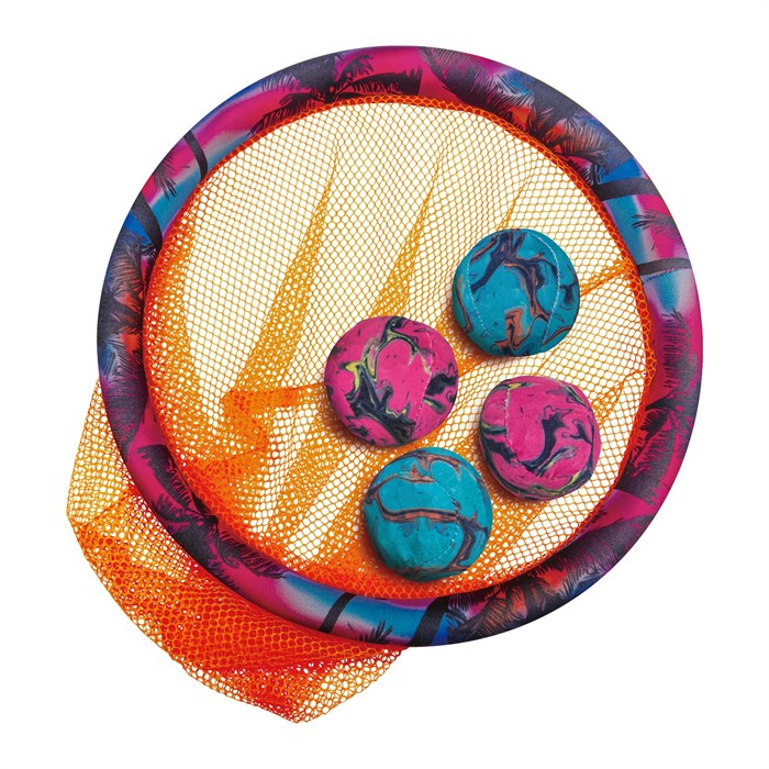 Mach einen Sprung ins kühle Nass mit Dunk or Dive! Unser exklusives neues Wurfspiel für den Pool verfügt über einen schwimmenden Ring mit Fangnetz und 4 mit Sand gefüllte Tauchbälle, die versenkt werden können. Die Spieler wetteifern darum, wer seine Bälle zuerst im Netz landen lässt. Das Ziel verfehlt? Das bedeutet wohl, dass du tauchen gehst! Geeignet ab 8 Jahren. Inhalt: 1 Schwimmring mit Fangnetz und 4 Tauchbälle.