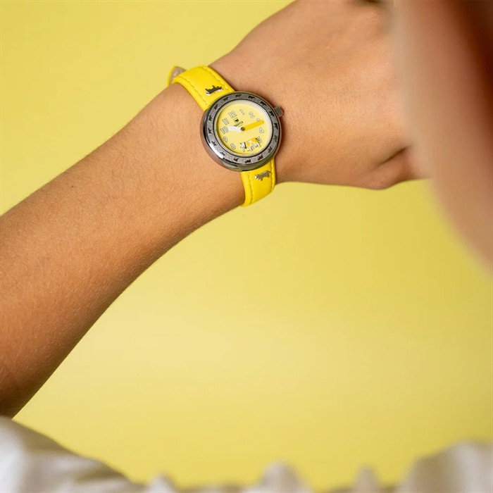 Diese fröhliche Kinderuhr von Trauffer bringt mit ihrem leuchtenden Gelb sofort gute Laune ans Handgelenk. Das helle Zifferblatt mit klaren Zahlen sorgt dafür, dass Kinder die Uhrzeit schnell und einfach lernen können.