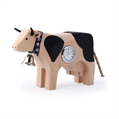 Diese stilvolle Holzkuh verbindet traditionelle Handwerkskunst mit einer integrierten Uhr und wird so zu einem besonderen Blickfang. Die Kombination aus naturbelassenem Holz, schwarzen Akzenten und dem schlichten silbernen Zifferblatt verleiht ihr eine moderne und zugleich zeitlose Ausstrahlung.
